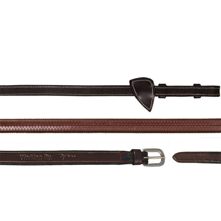 Dyon rubberteugel 1/2" van "Working by Dy'on" Rubberteugel in buffelleer met naar binnen gerichte zilverkleurige gespen, prachtig ontworpen martingaalstoppers.