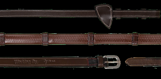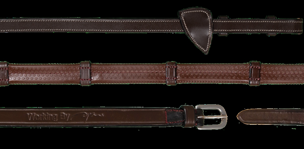Deze rubber teugels uit de Dyon’s WORKING BY DYON collectie combineren functionaliteit met elegant design. De teugels zijn gemaakt van duurzaam rubber en hebben stops van fijn buffelleer met naar binnen gerichte gespen, die zorgen voor een perfecte grip en controle. Zilverkleurige gespen en stijlvolle martingaalstoppers maken de exclusieve look compleet.