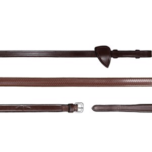 Rubberen teugel in fijn Spaans leer met naar binnen gerichte zilverkleurige gespen.