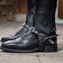 Dyon leren spoorriemen met nylon versterking en stalen gespen.