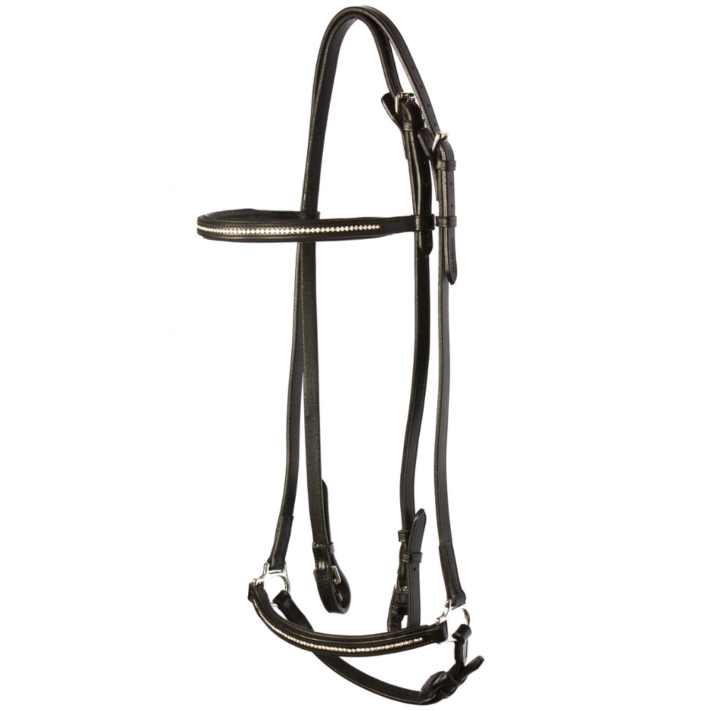 Creëer een luxueuze uitstraling voor je paard met dit elegante hoofdstel, dat functionaliteit en stijl combineert. Het hoofdstel is ontworpen met kleine, witte kristallen op zowel het kopstuk als de neusriem, wat een verfijnde en tijdloze uitstraling geeft die echt opvalt. Perfect voor zowel wedstrijden, competities als dagelijks rijden.