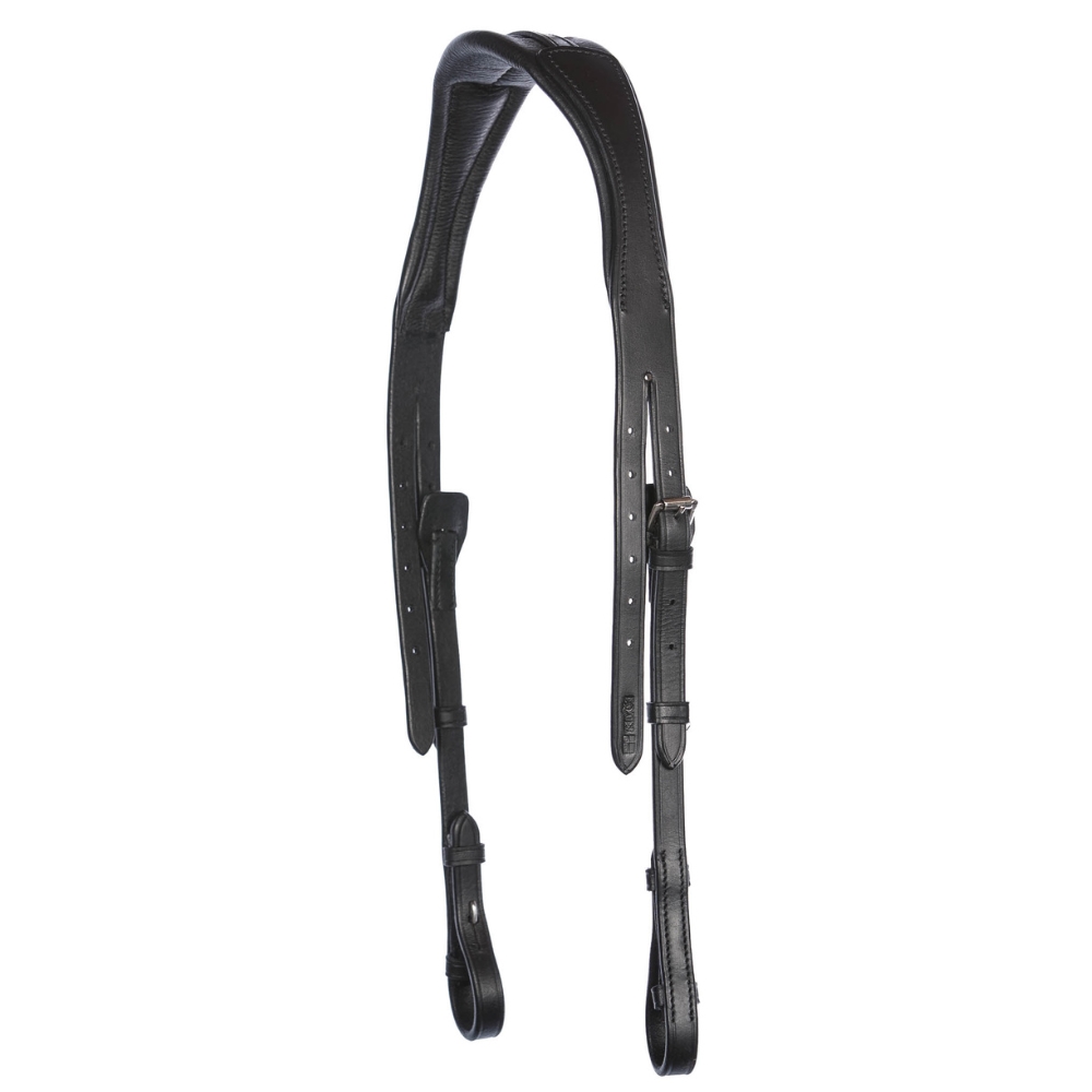 De ergonomische vormgeving zorgt ervoor dat het hoofdstel de oren van het paard niet irriteert, en het nekstuk is handgemaakt van leer van de hoogste kwaliteit. De zachte voering in het midden biedt extra comfort en verbeterde flexibiliteit, zodat het paard ontspannen en moeiteloos kan werken.