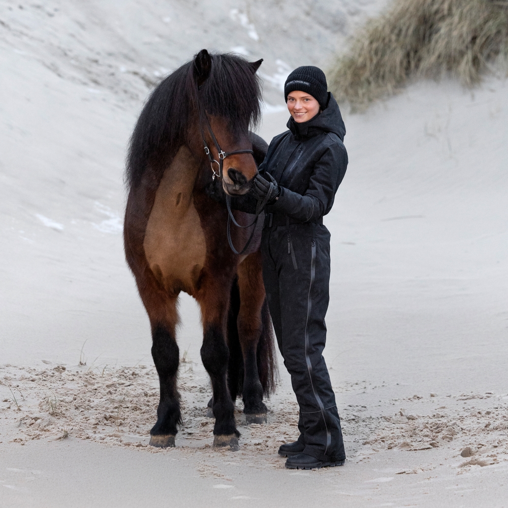 EQUES|KINGSLAND Saga Ladies Riding Overall voor dames combineert goede weerbescherming, hoge bewegingsvrijheid en een functioneel ontwerp. Reflecterende details verhogen de zichtbaarheid in donkere uren. Het overall is een essentieel onderdeel van de wintergarderobe en biedt comfort en veiligheid tijdens trainingen en ritten in het koude seizoen.