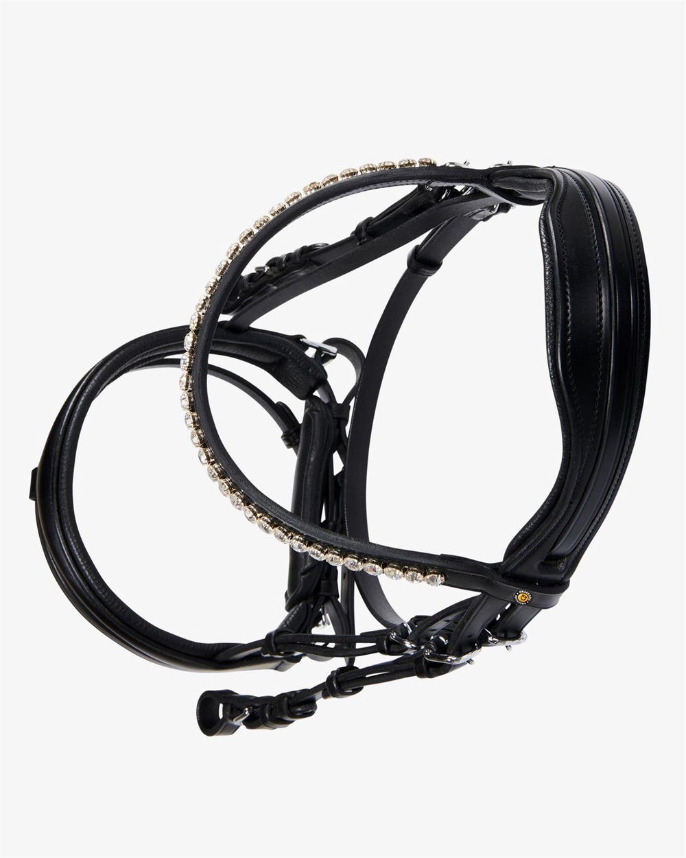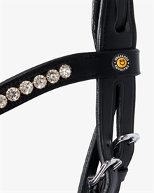• Frontriem met ingelegde glitter en metalen Equestro logoplaat