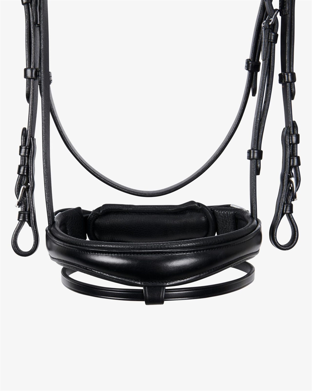 Elegant en functioneel Engels hoofdstel gemaakt van zacht, Italiaans leer van hoge kwaliteit, dat maximale comfort en bewegingsvrijheid voor het paard garandeert. Het hoofdstel combineert stijl en functionaliteit met een anatomisch gevormd kopstuk, dat de druk op de meest gevoelige gebieden over een breder oppervlak verdeelt.