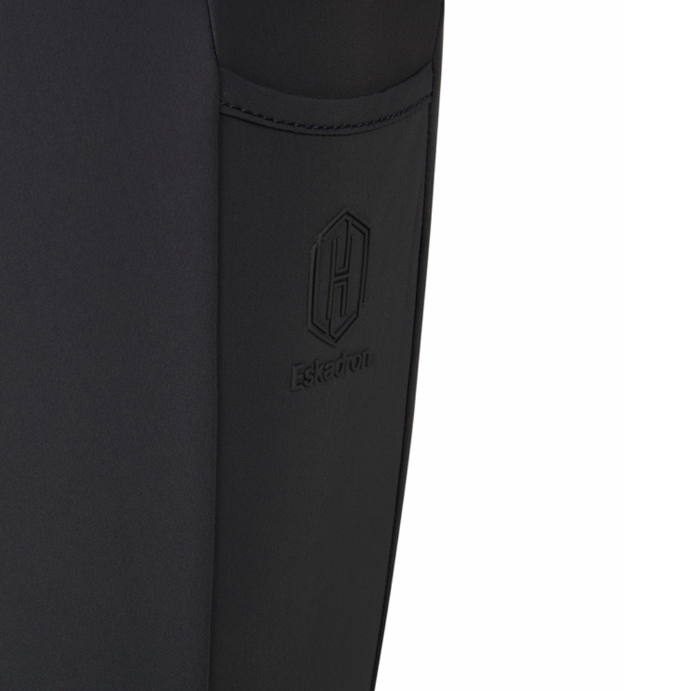 Voor een strak en modern uiterlijk zijn de tights ontworpen met fake ritssluitingen, een vormgevende brede tailleband met riemlussen, en een mooie gebogen naad aan de achterkant met Eskadron-print. De praktische telefoonzakken aan beide zijden maken het gemakkelijk om je telefoon mee te nemen in de stal.