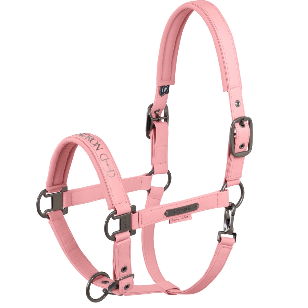 Het ontwerp wordt gecompleteerd met exclusieve gespen en een verfijnd "Platinum"-borduursel op de neusriem. Aan de linkerkant is het halster bovendien versierd met een elegant Eskadron-plaatje, dat de exclusieve uitstraling benadrukt.