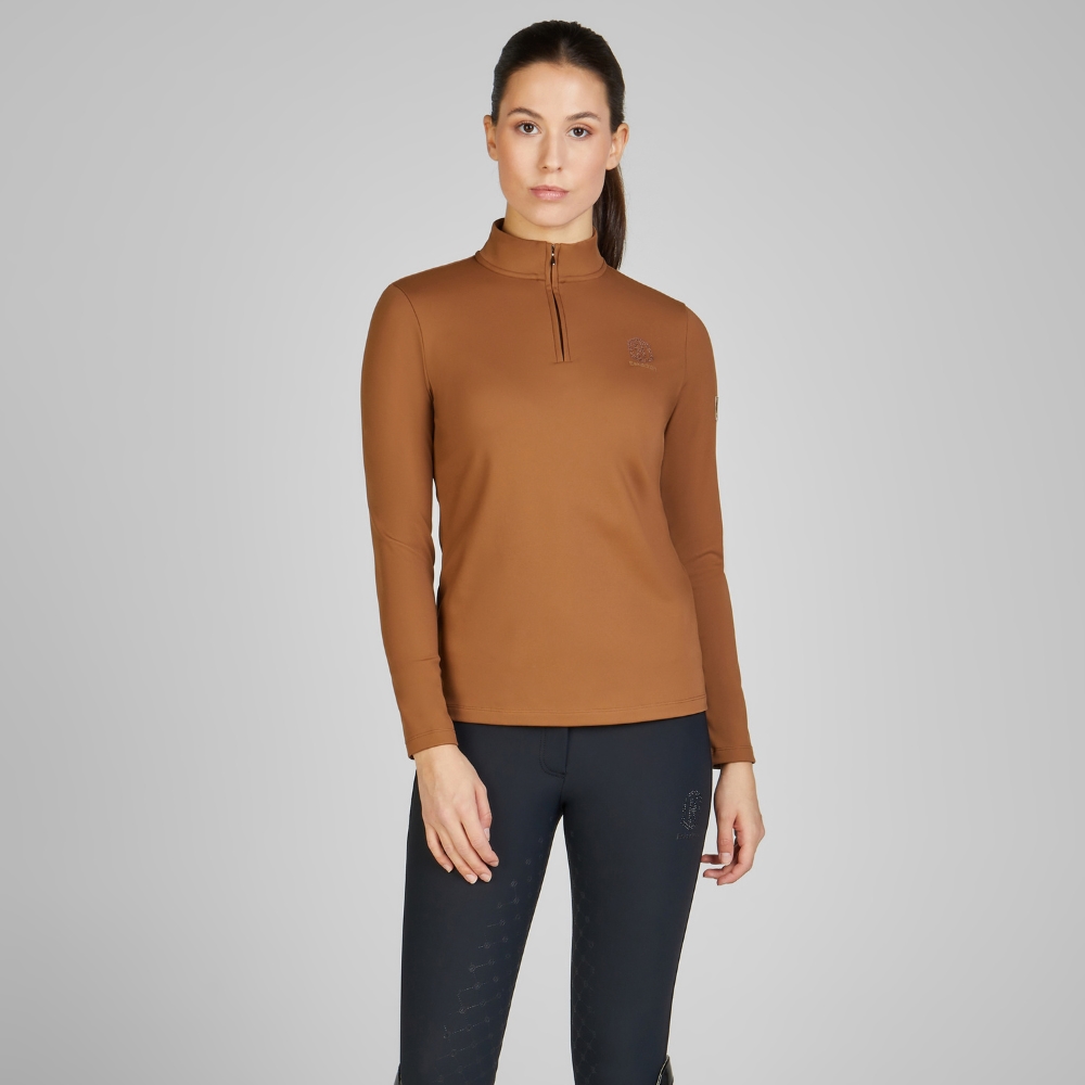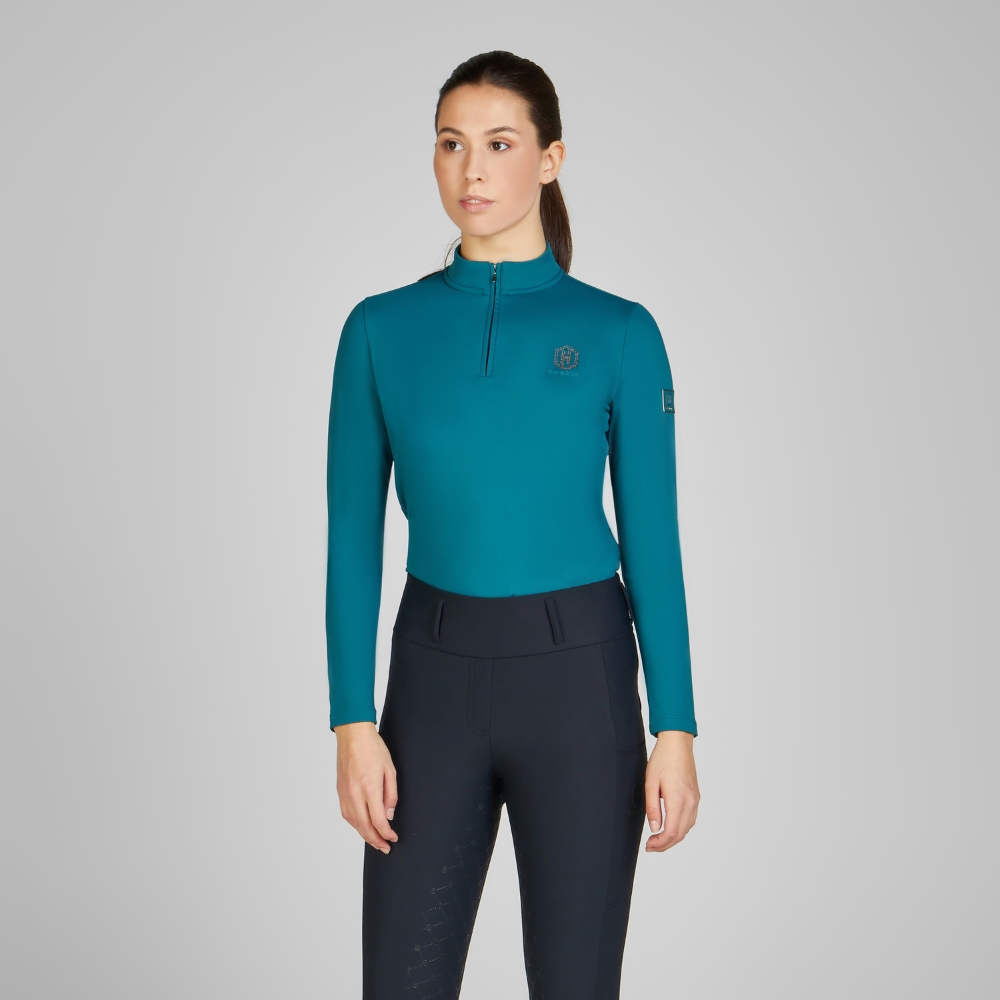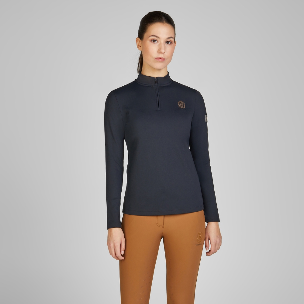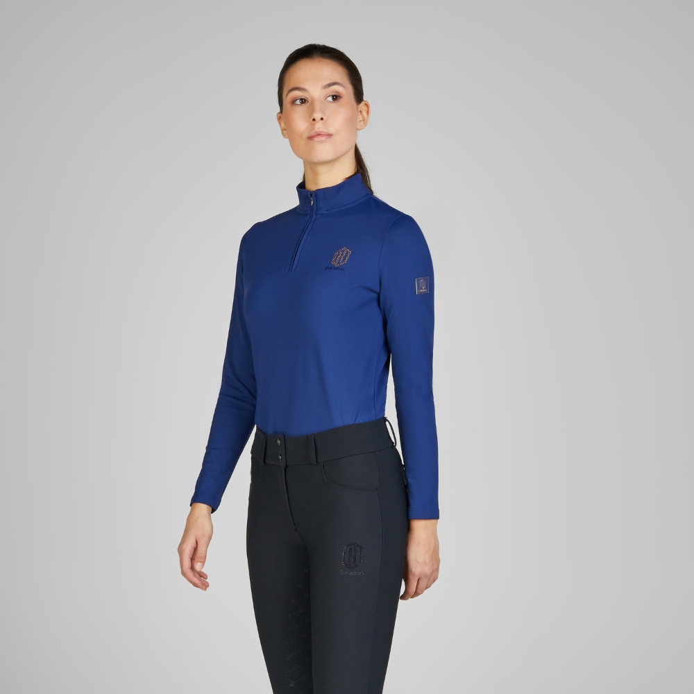 Functionele 4-weg tech jersey langärmige blouse met halve rits en opstaande kraag.