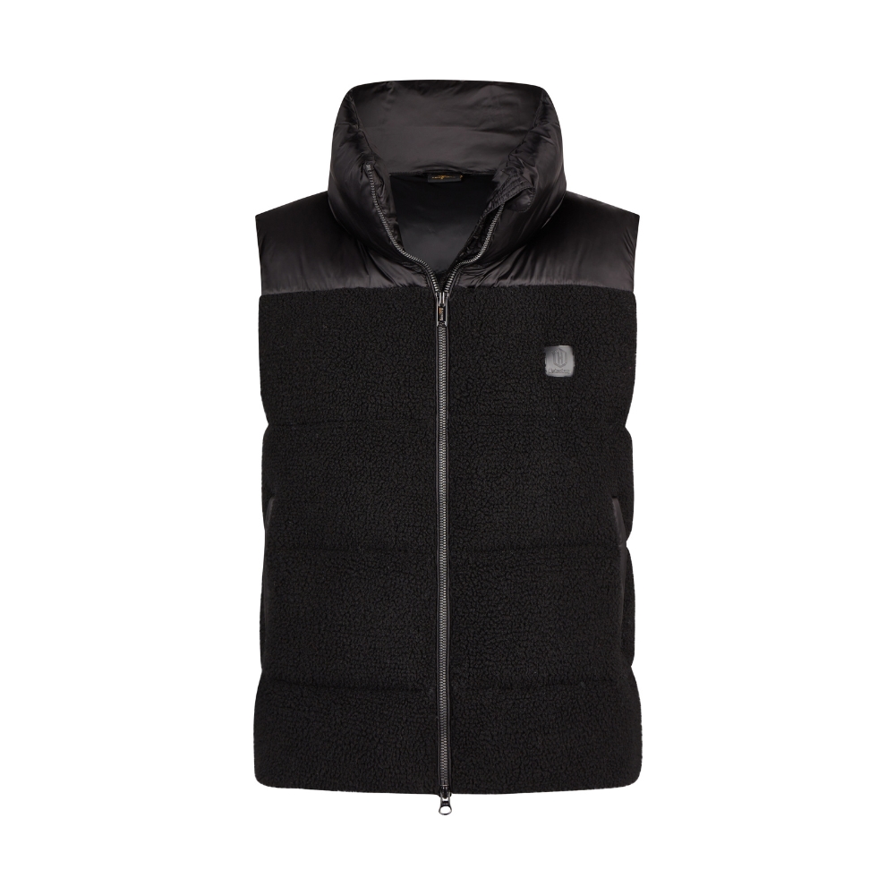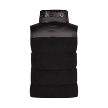 Stijlvolle gewatteerde bodywarmer gemaakt van teddy fleece en matte glans.