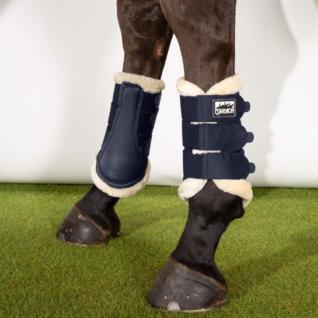 Eskadron Soft Mesh Fauxfur dressuurbeschermers zijn ademende dressuurbeschermers met imitatie lamsvacht aan de rand.