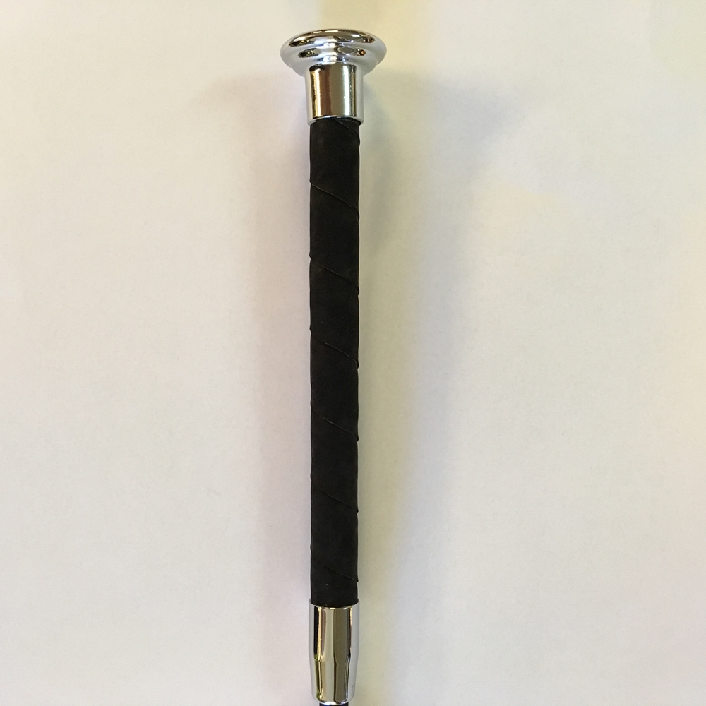 Fleck silktouch springzweep met suède-look handvat, leren flap aan het uiteinde.