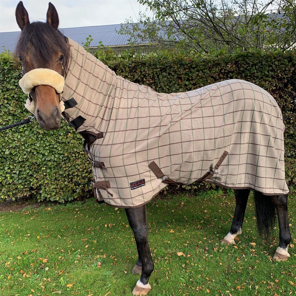 Mooie stevige fleecedeken met vaste hals en vaste kruissingels. Verkrijgbaar in kleur: Sand Check Verkrijgbaar in maat: 110 - 115 - 125 -135 - 140 - 145 - 155cm