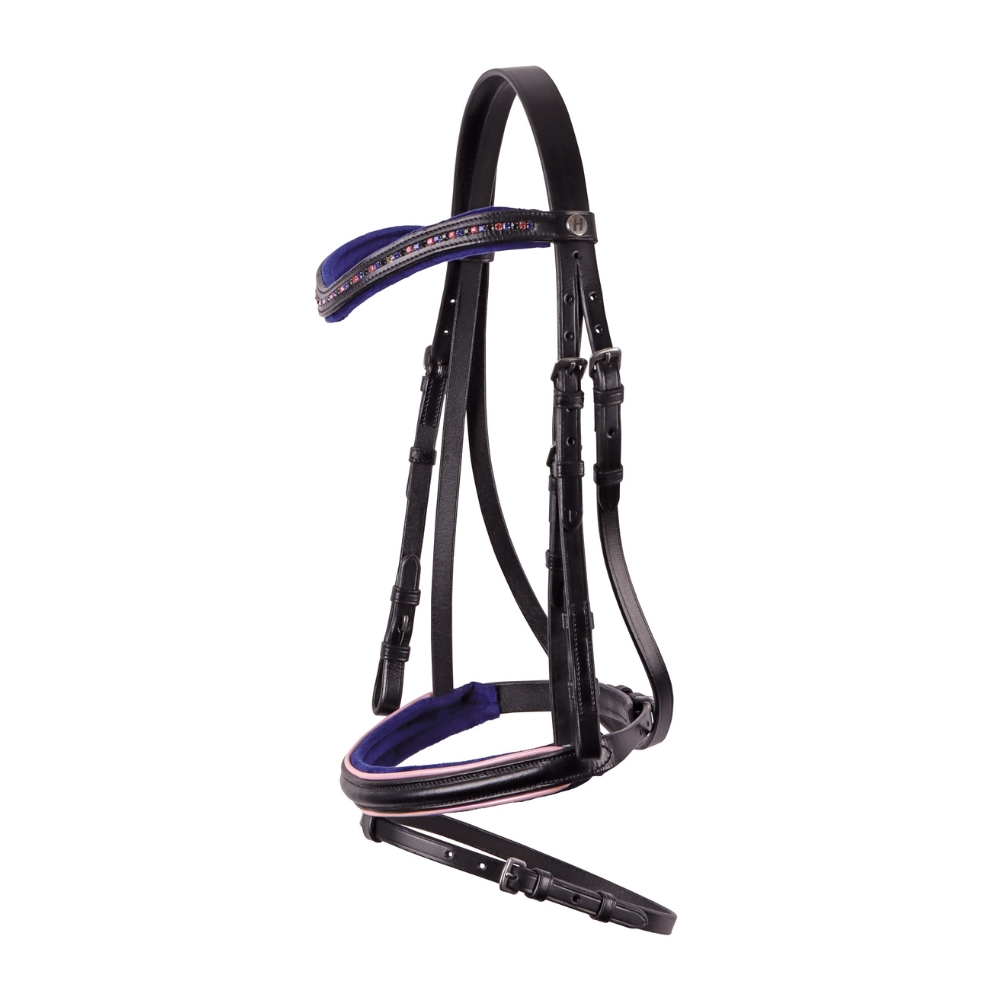 Harry's Horse Diva hoofdstel violet is een mooi hoofdstel met glanzende piping op de neusriem en kleurrijke stenen op het kopstuk.