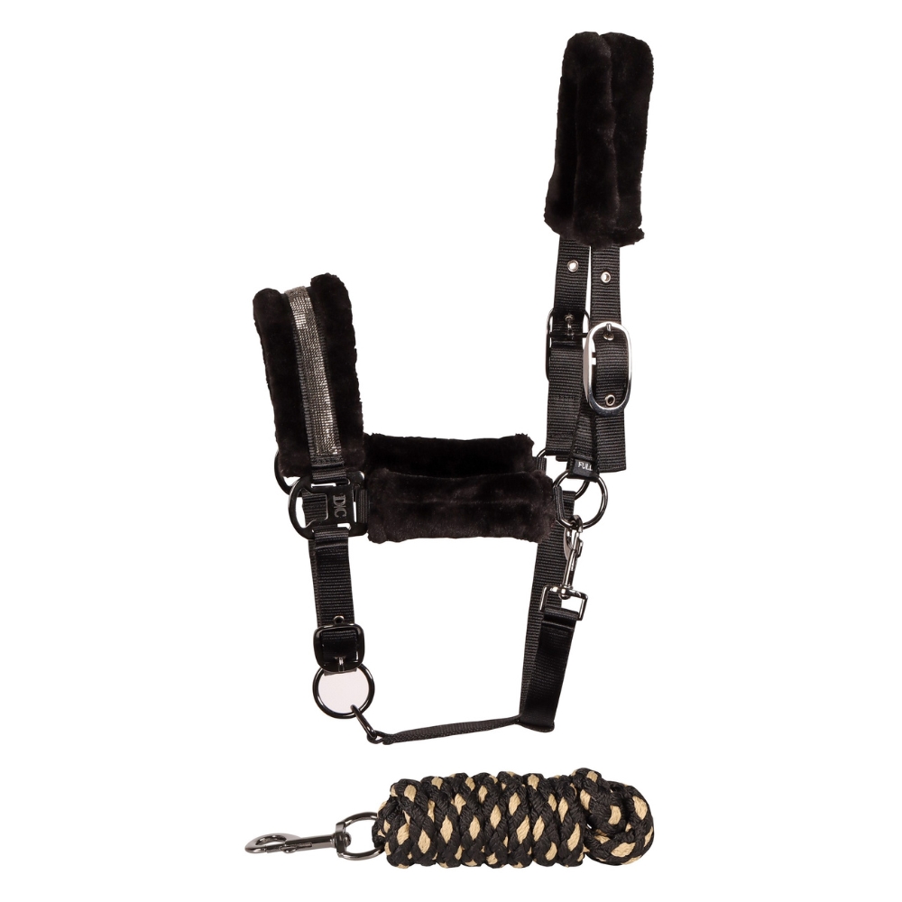 Het halster is versierd met sprankelende details op de neusriem en heeft zacht imitatiebont op neus-, wang- en nekstukken voor maximaal comfort.
