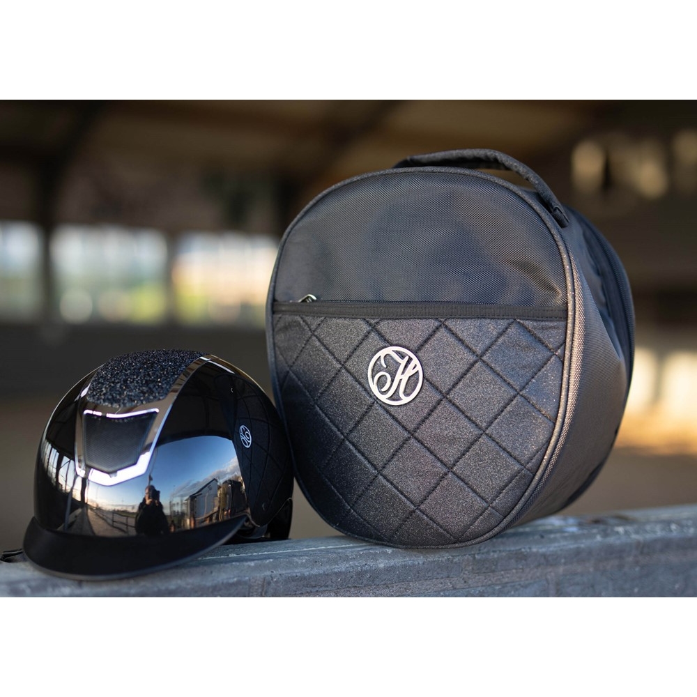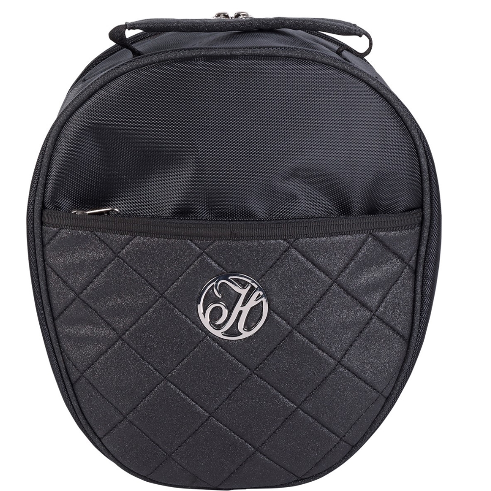 Mooie helmtas met glitter. De tas heeft een 2-weg ritssluiting in het deksel, een ritsvak en een klein handvat.