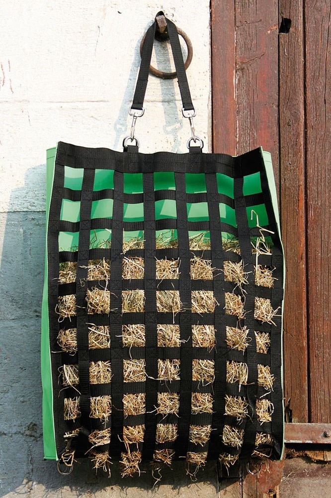 Het hooinet is gemakkelijk op te hangen op de meeste plaatsen met 2 karabijnhaken. De tas is geschikt voor transport. Voor een stationaire oplossing moet men rekening houden met het feit dat de tas niet sterk genoeg is.