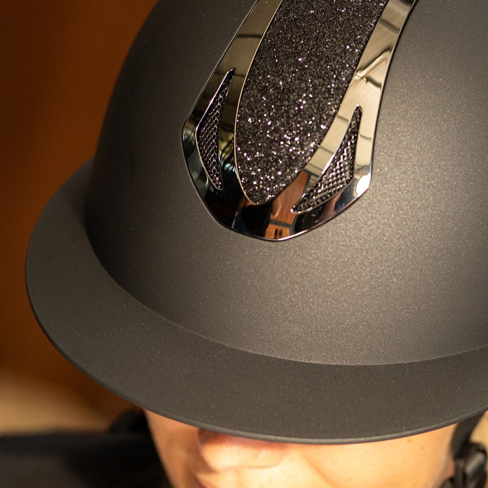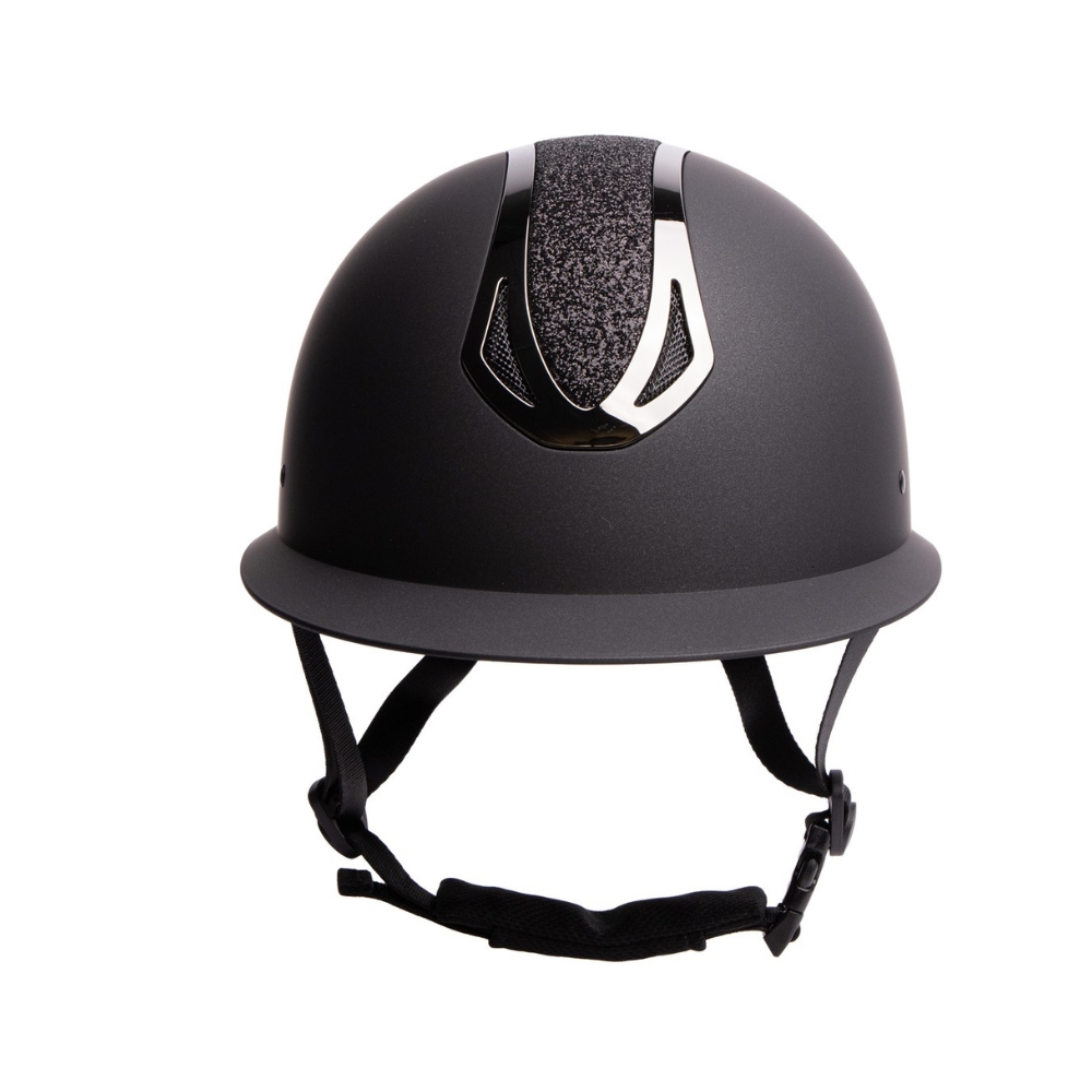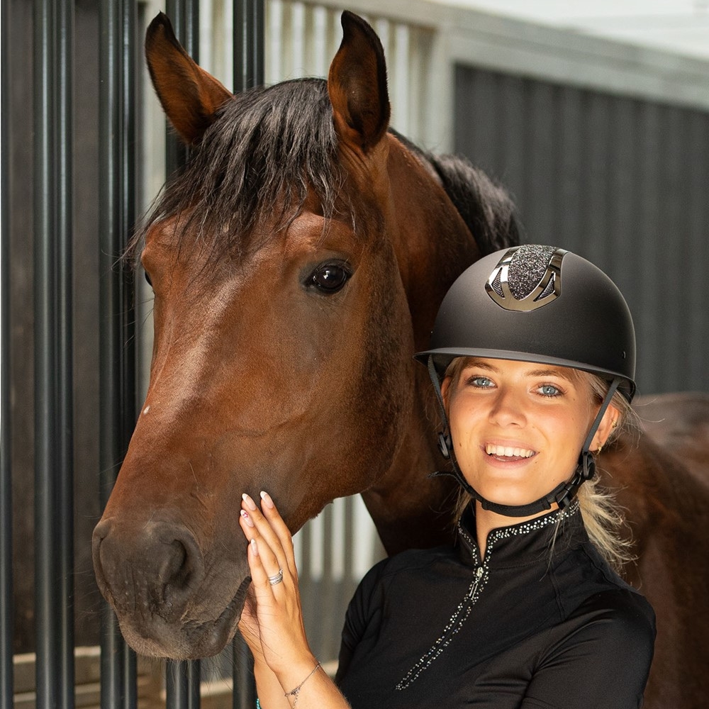 Een moderne, lichte en veilige rijhelm met een elegante matte afwerking en subtiele sparkle-details – perfect voor de ruiter die stijl en veiligheid wil combineren.