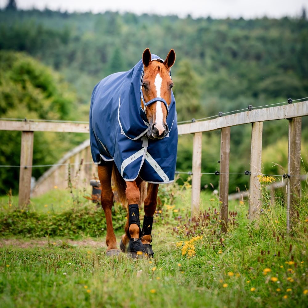 • Waterdicht en ademend: 1200D ripstop polyester beschermt tegen wind en weer, terwijl ademende polyester voering het paard droog houdt.
