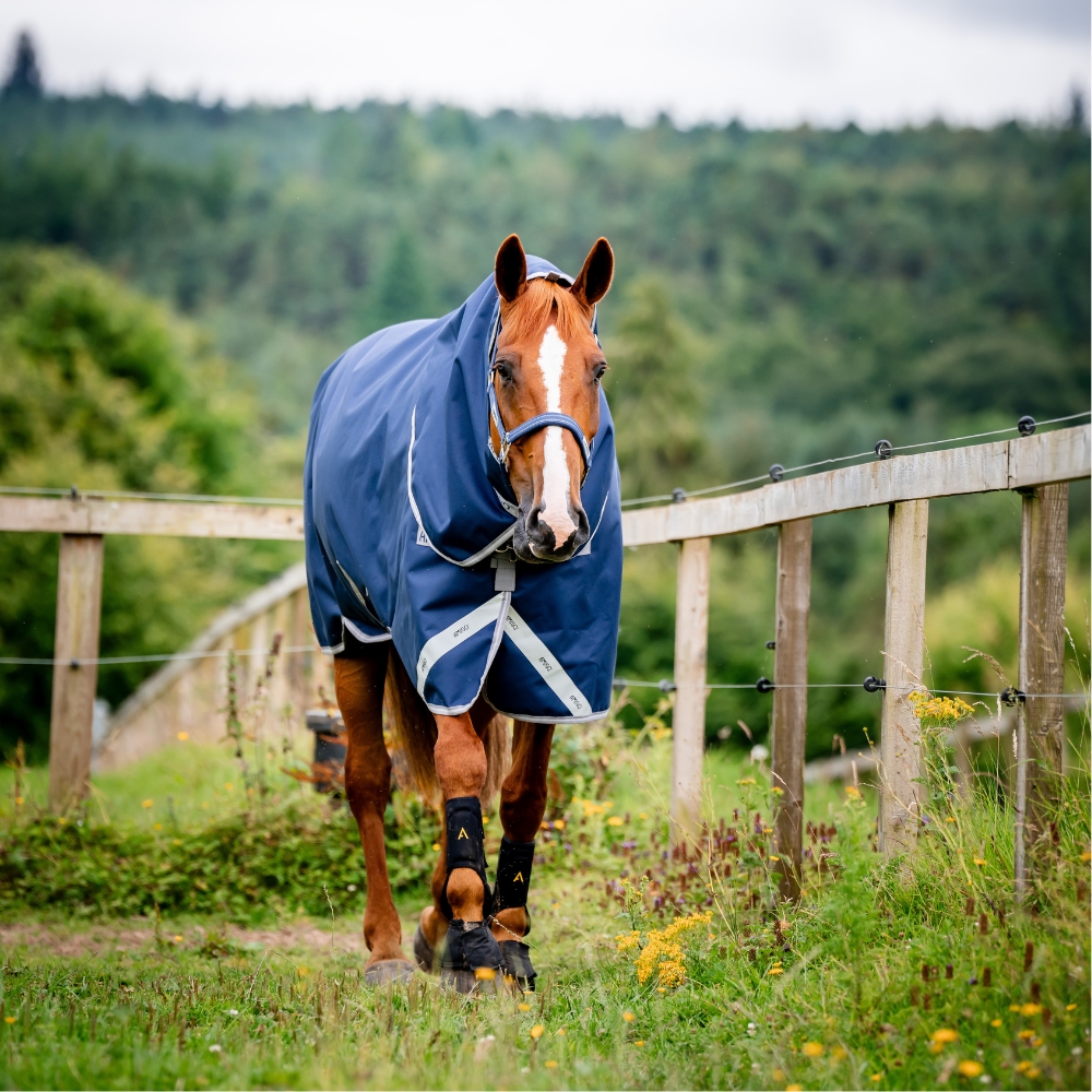 Met 100 gram vulling werkt de deken perfect als zowel regendeken als overgangsdeken. Hij is compatibel met het Horseware Liner System, zodat je de warmte eenvoudig naar behoefte kunt aanpassen door een liner toe te voegen. De liner wordt gemakkelijk bevestigd met klittenband en karabijnhaken bij de staartkoord.