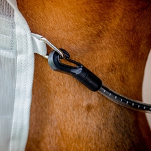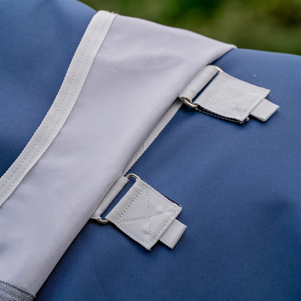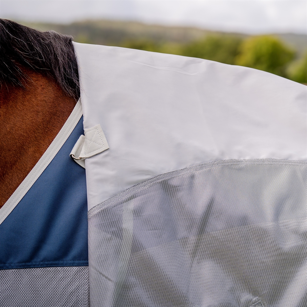 Het rugstuk is waterdicht, zodat je paard droog blijft tijdens lichte zomerse buien, terwijl de lichte, ademende mesh-zijkanten zorgen voor ventilatie en oververhitting voorkomen. Over de rug biedt de deken bovendien 100% UV-bescherming, wat de huid en vacht van het paard beschermt tegen de felle zonnestralen.