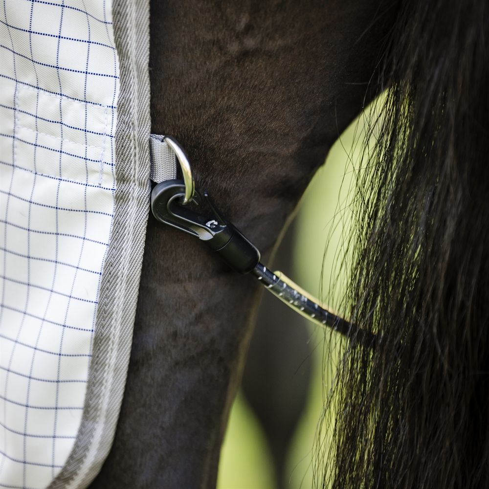 Het deken is gemaakt van een duurzaam Ripstop-buitenmateriaal van polyester, dat zorgt voor een lange levensduur en hoog comfort voor het paard.