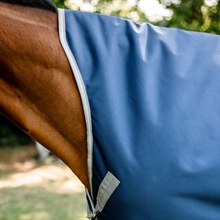Mooi winterdeken met halve hoge hals en 250 gram vulling en nylonvoering om te voorkomen dat het paard schuurplekken op de borst krijgt.
