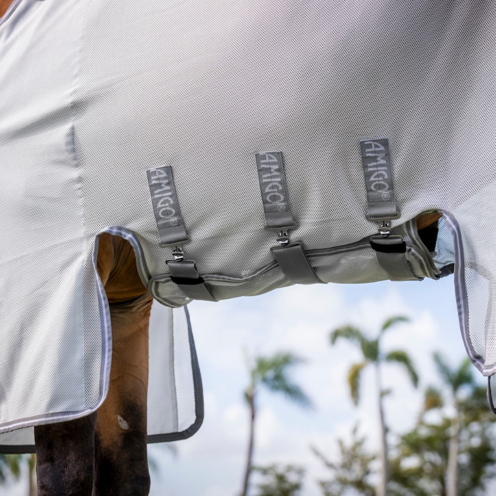 Amigo Bug Buster is een doordachte vliegendeken die extra goede bescherming biedt tegen insecten en zon. De deken heeft een extra lengte bij de benen, een brede buikflap en een lange staartflap, die samen maximale dekking en comfort voor het paard bieden.
