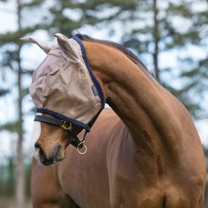 Heerlijke en duurzame vliegenmasker van Horseware in gecoat polyester met zachte oren en pluche rand.