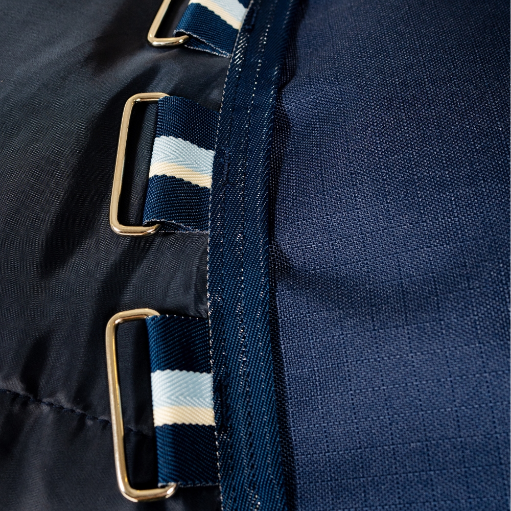 Het is gemaakt van 900 denier ripstop polyester, wat het zowel slijtvast, waterdicht als ademend maakt. Dubbele voorsluiting en twee kruissingels zorgen voor een goede pasvorm en stabiliteit, terwijl het meegeleverde staartriem de deken op zijn plaats houdt.