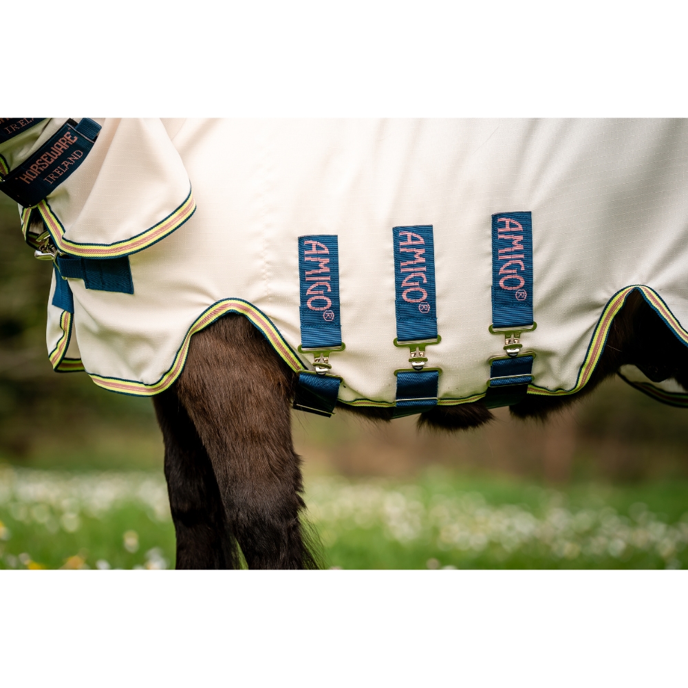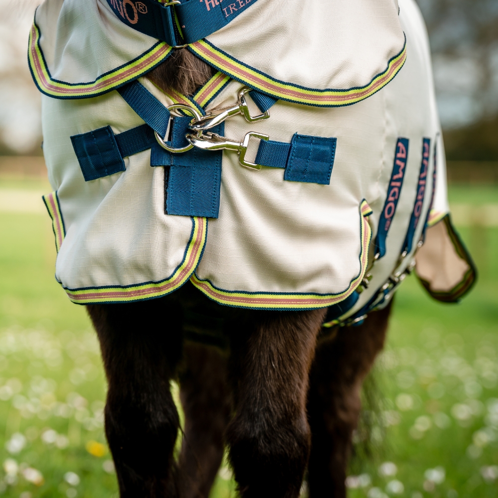 Amigo Ripstop Petite Hoody is de ideale keuze voor miniatuurpaarden die in de zomerperiode maximale bescherming en comfort nodig hebben – zodat ze rustig en comfortabel de wei op kunnen.