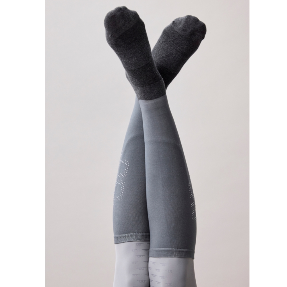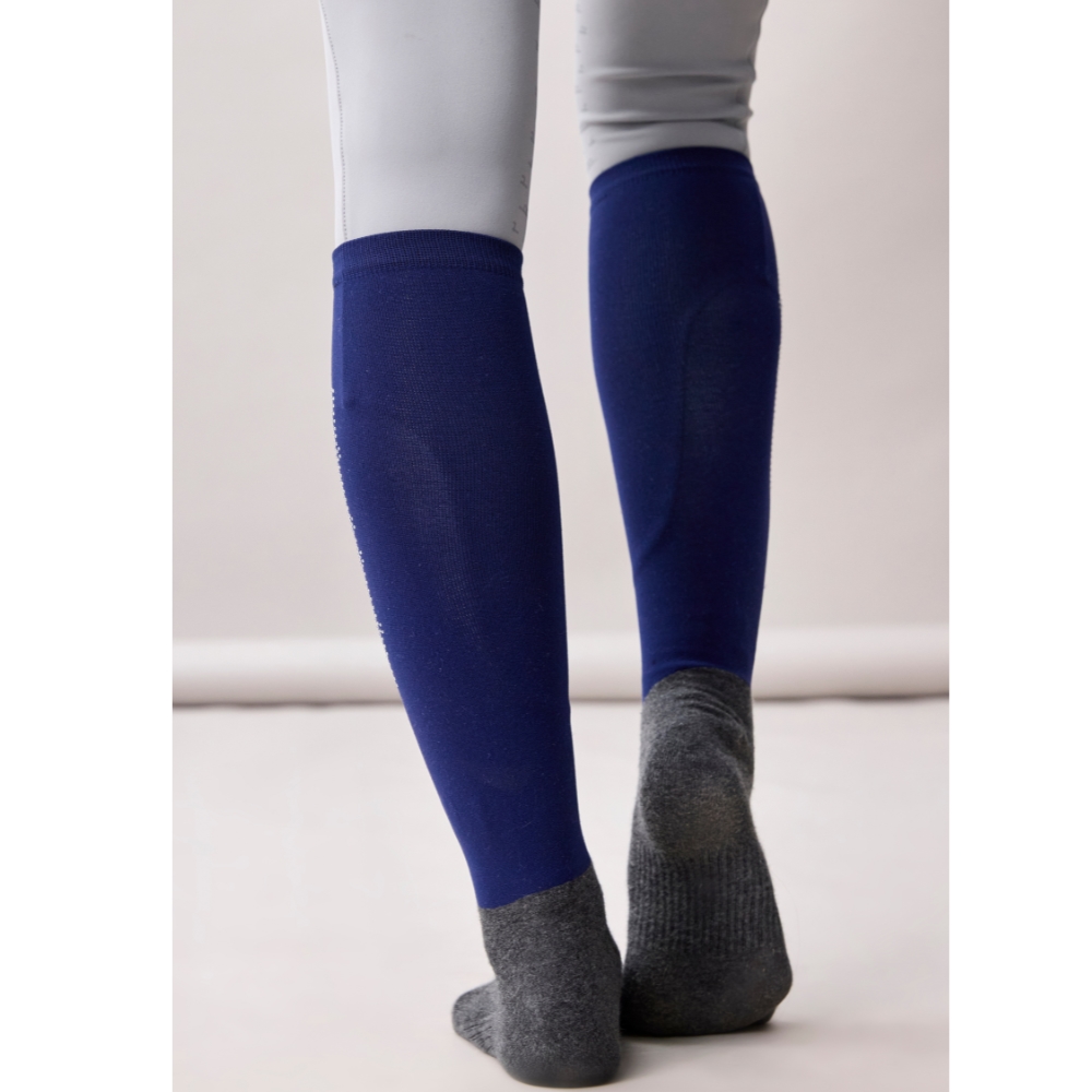 Het nauwsluitende bovendeel omsluit de kuit comfortabel en is prachtig versierd met kristaldetails, die een elegante en exclusieve uitstraling geven. Het voetgedeelte is gemaakt van ademend en licht katoen, dat zorgt voor goede ventilatie en hoog comfort – zelfs tijdens lange ritten.
