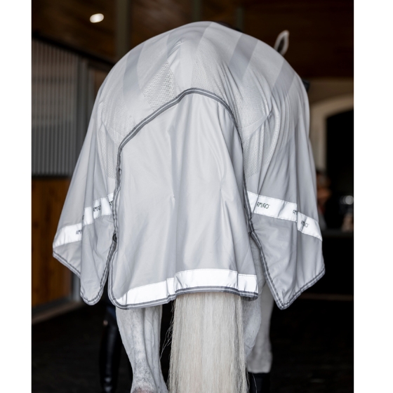 Achteraan heeft de deken een grote staartflap met staartriem, voor extra bescherming. Reflecterende details en de goed zichtbare kleur verhogen de zichtbaarheid wanneer je buiten rijdt.
