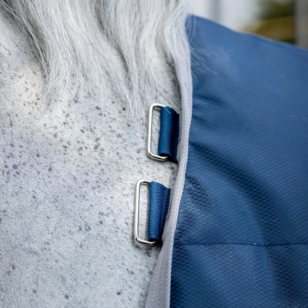 De buitenkant is gemaakt van 210D polyester Diamond Ripstop, dat zowel duurzaam als ademend is. Het diamantgeweven ripstop-materiaal biedt extra duurzaamheid bij dagelijks gebruik en beschermt het paard tegelijkertijd tegen kou. Met 50 gram vulling is het deken ideaal voor de stal en koelere periodes, zonder te warm te worden.