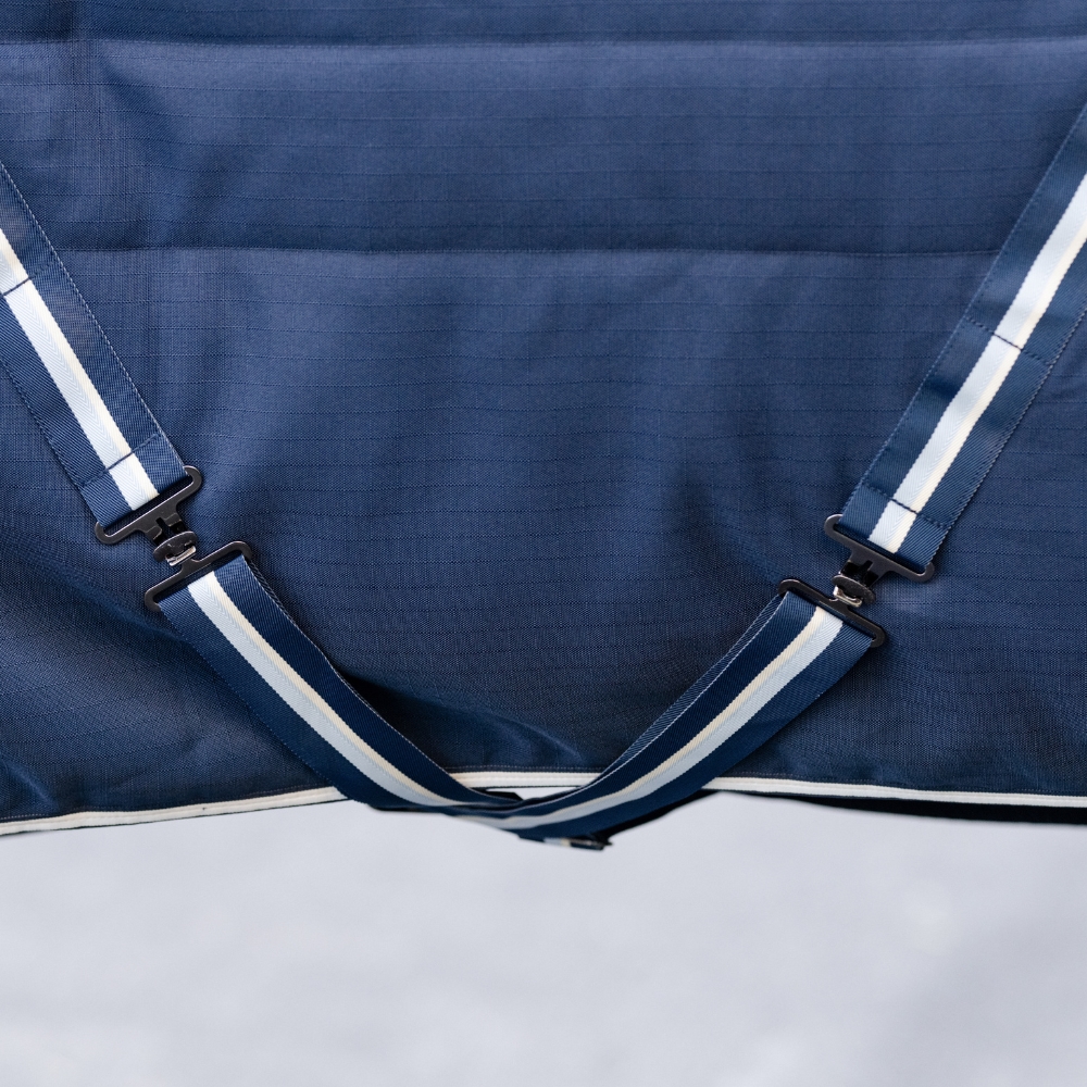 Het deken is gemaakt van een robuust 1000D ripstop buitenmateriaal, dat zorgt voor een lange levensduur bij dagelijks gebruik. De thermo-bonded vezelvulling geeft een gelijkmatige en effectieve warmte-isolatie zonder koudebruggen, terwijl de vochtabsorberende microvezelvoering helpt om het paard droog en comfortabel te houden, ook wanneer het na training nog licht warm is.