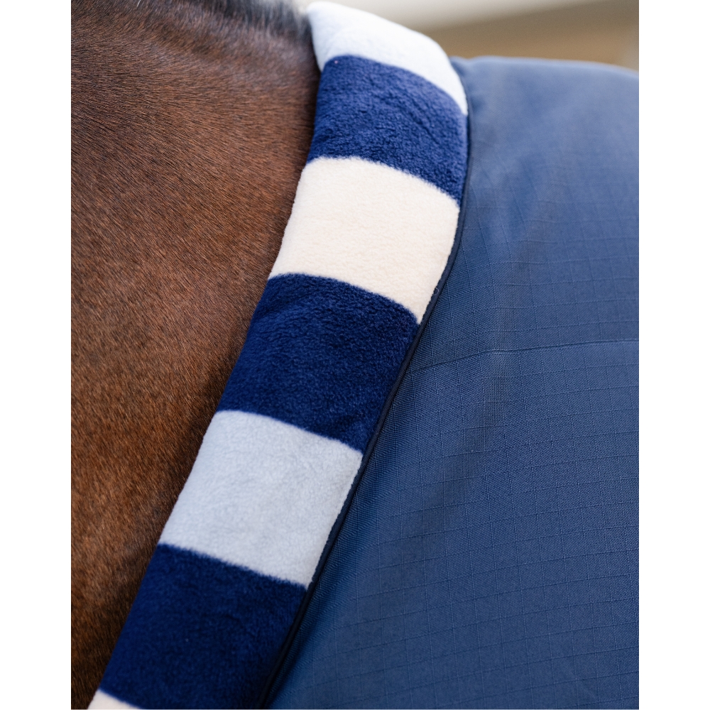 De zachte fleece kraag met klassieke Newmarket-strepen beschermt tegen tocht rond de hals en geeft tegelijk een exclusieve uitstraling. De V-frontsluiting van Horseware zorgt voor optimale schoudervrijheid, zodat het paard natuurlijk en moeiteloos kan bewegen.