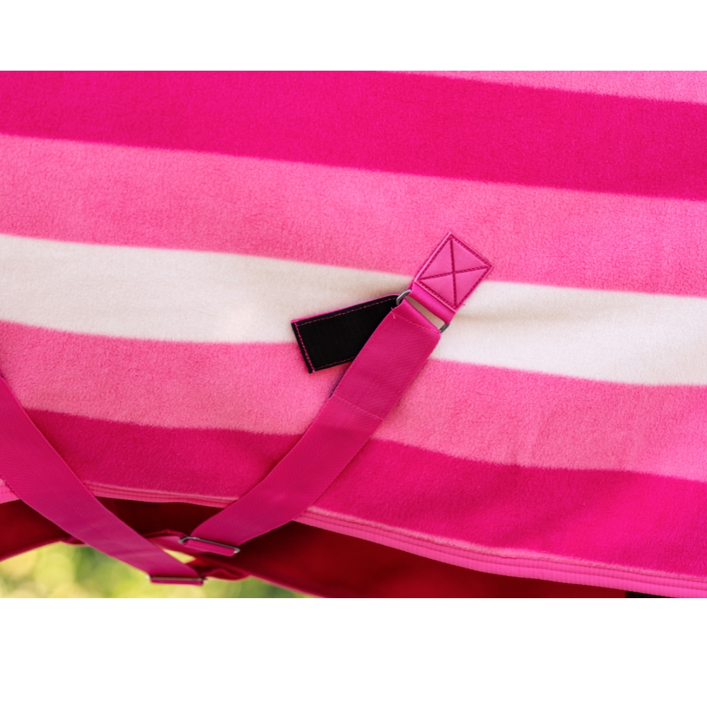 Het bekende Newmarket streeppatroon geeft de deken een stijlvolle en herkenbare uitstraling, die perfect past voor zowel stalgebruik, transport als wedstrijddagen. De ademende fleece heeft fantastische vochttransporterende eigenschappen, die zweet effectief van het lichaam van het paard afvoeren na de training. Op deze manier helpt de deken bij een geleidelijke afkoeling, zodat je pony droog en comfortabel blijft.