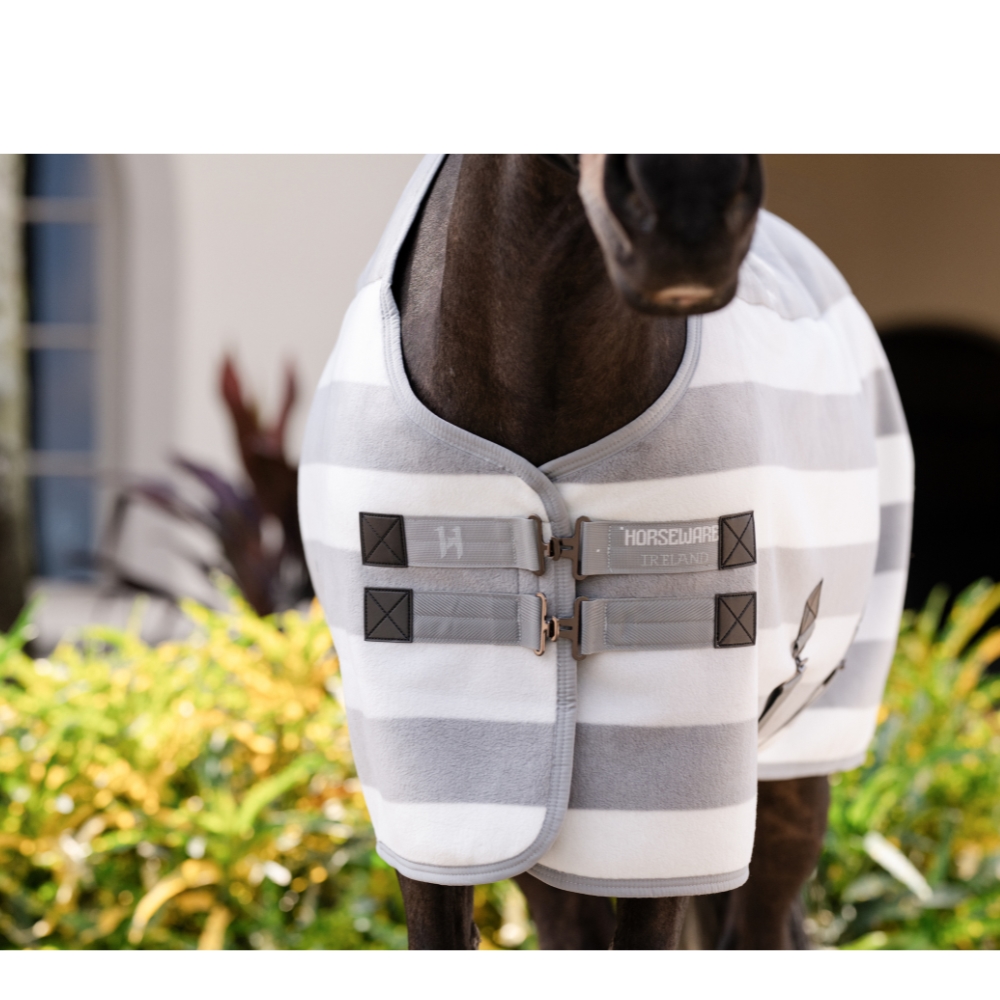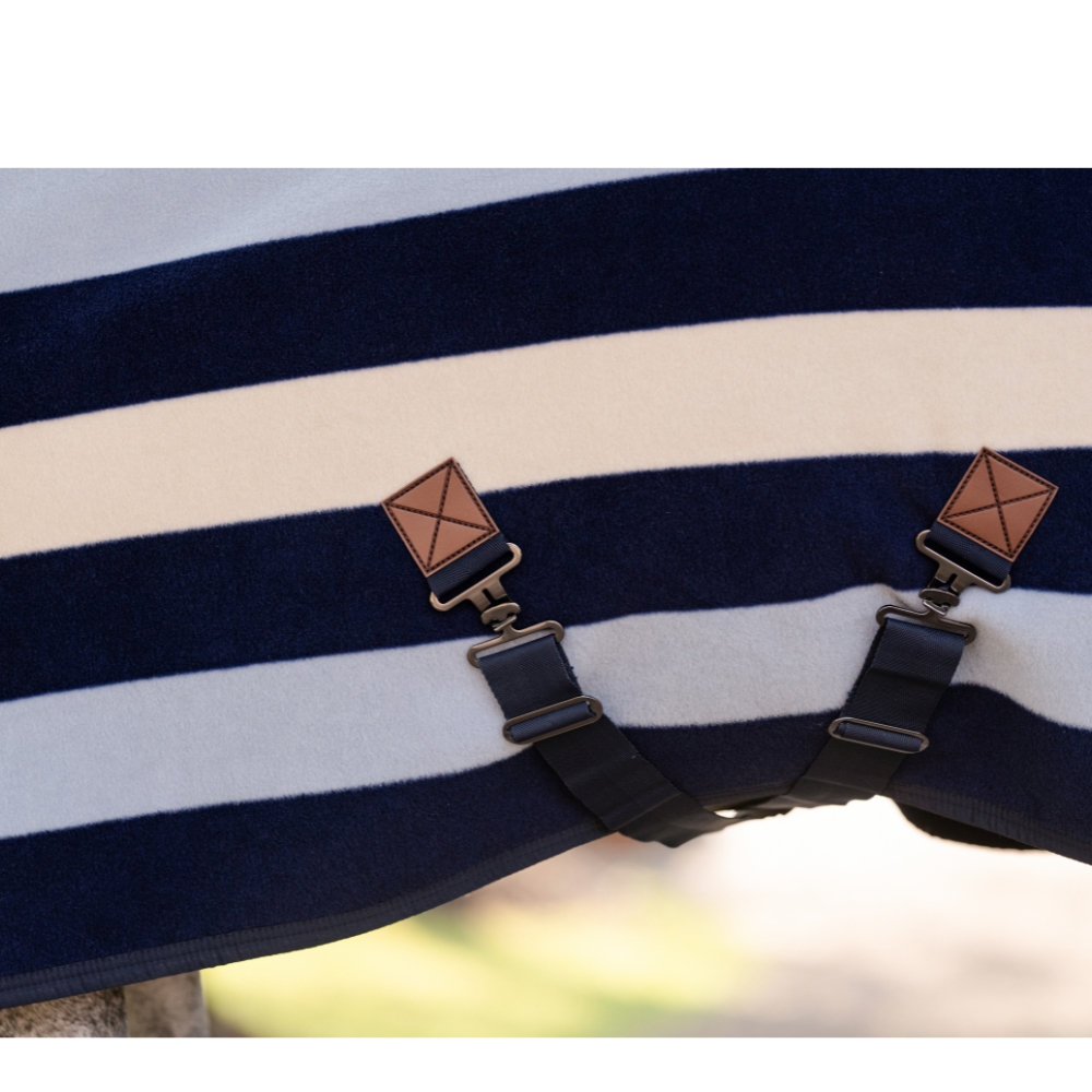 Het bekende Newmarket streeppatroon geeft het deken een stijlvolle en herkenbare uitstraling, die perfect past bij zowel stalgebruik, transport als wedstrijddagen. De ademende fleece heeft fantastische vochttransporterende eigenschappen, die zweet effectief van het lichaam van het paard afvoeren na de training. Op deze manier helpt het deken bij een geleidelijke afkoeling, zodat je pony droog en comfortabel blijft.