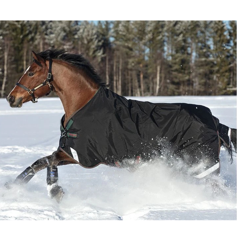 Met 400 gram vulling biedt het deken een comfortabele en stabiele warmte-isolatie, ideaal voor paarden die behoefte hebben aan matige warmte. De gladde nylon voering helpt slijtage aan borst en vacht te voorkomen, zodat het paard comfortabel en goed beschermd blijft.