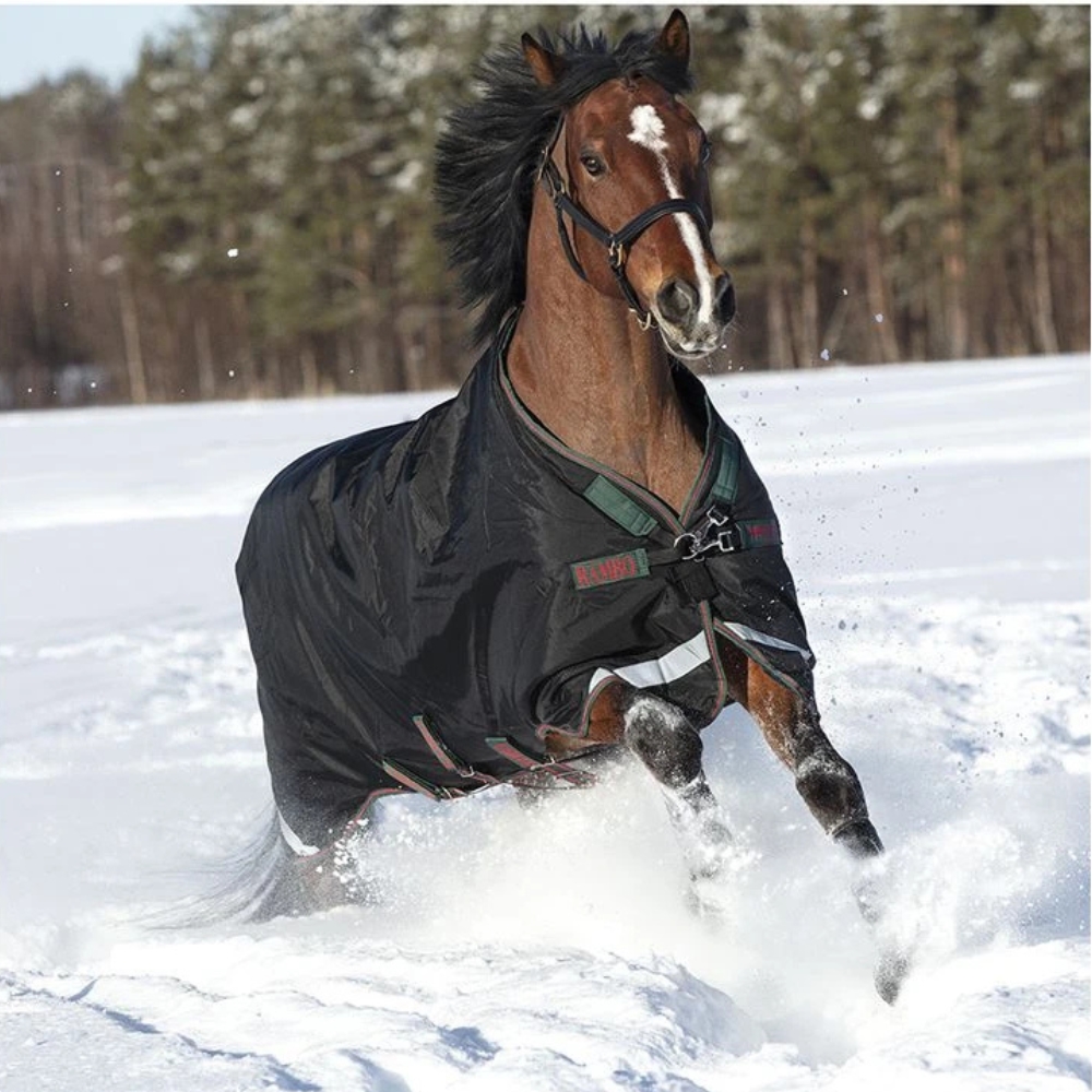 Rambo Wug 400 gram is een van Horsewares meest betrouwbare dekens voor koele herfst- en winterdagen. Het is gemaakt van ultrasterk 1000 denier ballistisch nylon, dat bekend staat om zijn extreme duurzaamheid, waterdichtheid en scheurvastheid. De kenmerkende halfhoge Wug-hals biedt extra bescherming tegen wind en weer – zonder druk op de schoft.