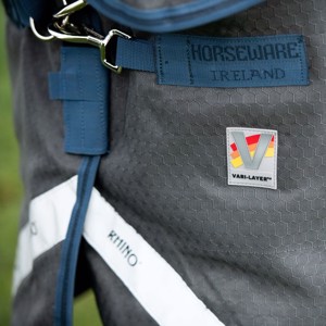 Horseware Rhino Plus HexStop Vari-Layer is een functionele overgangs- en winterdeken met 250 gram Vari-Layer vulling. De Vari-Layer technologie betekent dat de vulling strategisch is verdeeld: 250 gram over de rug en achterhand, terwijl er 100 gram langs de zijkanten zit. Omdat paarden de meeste warmte verliezen via de rug, zorgt deze verdeling voor optimale warmte zonder de deken onnodig zwaar te maken.