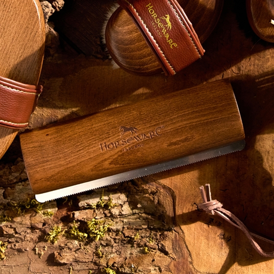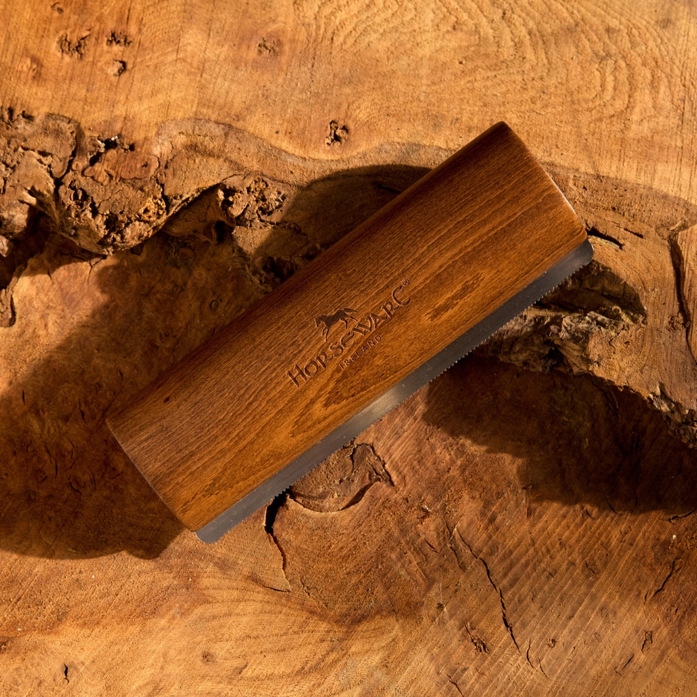 De rosborstel is voorzien van een ergonomisch, handgemaakt houten handvat dat zorgt voor een comfortabele en stevige grip, zodat je eenvoudig over het hele lichaam van het paard kunt werken, ook op gevoeligere plekken.
