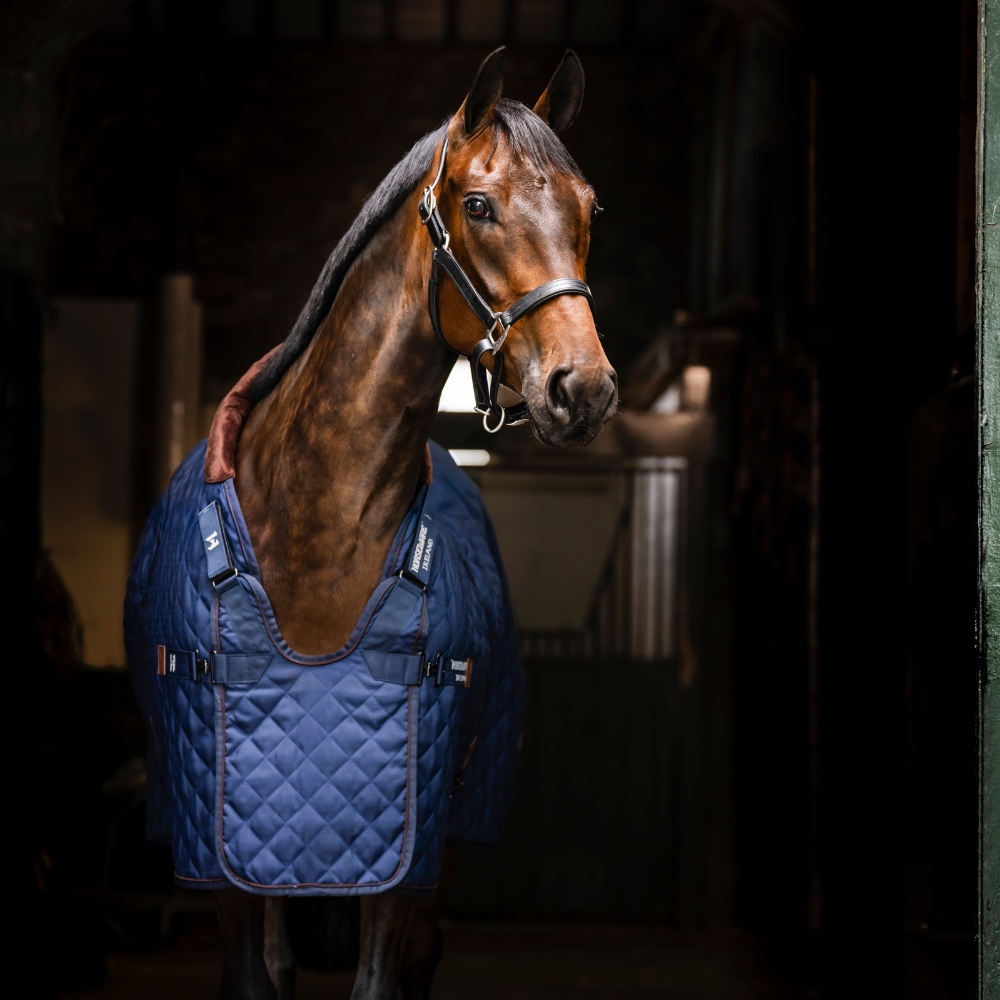 De slimme bib-voorsluiting vermindert drukpunten bij borst en schouders en geeft het paard de vrijheid om de hals natuurlijk te laten zakken – bijvoorbeeld tijdens het eten. Twee kruissingels zorgen ervoor dat de deken stabiel ligt, terwijl de praktische staartriem gemakkelijk schoon te maken is.