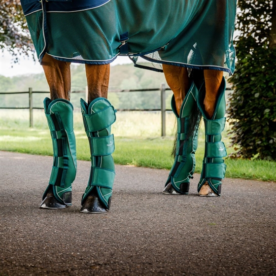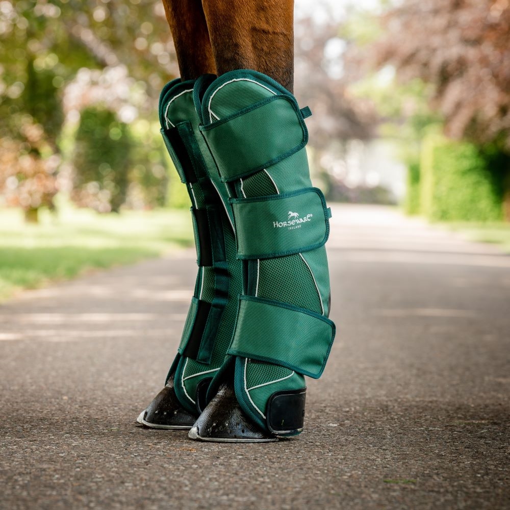 Horseware transportbeschermers zijn ontworpen om maximale bescherming en comfort te bieden tijdens transport. Ze zijn voorzien van airmesh panelen, die zorgen voor goede ventilatie en temperatuurregulering, zodat de benen van het paard tijdens de hele rit droog en comfortabel blijven.
