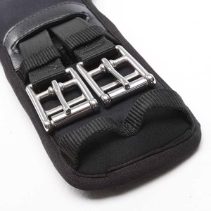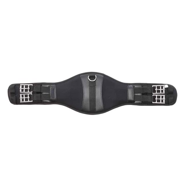 De singel heeft een D-ring in het midden, evenals gespen van roestvrij staal en elastiek aan de uiteinden.