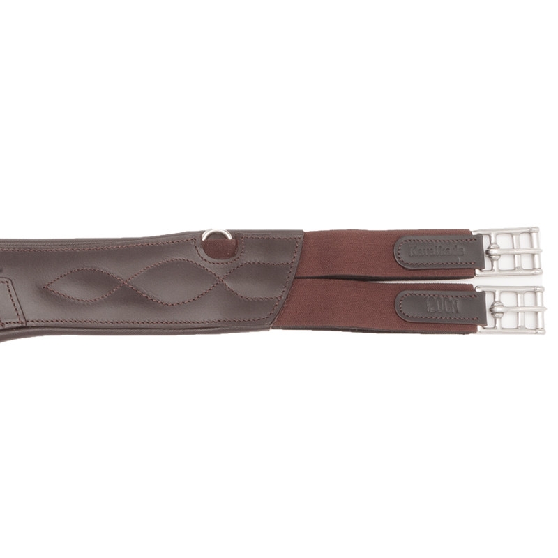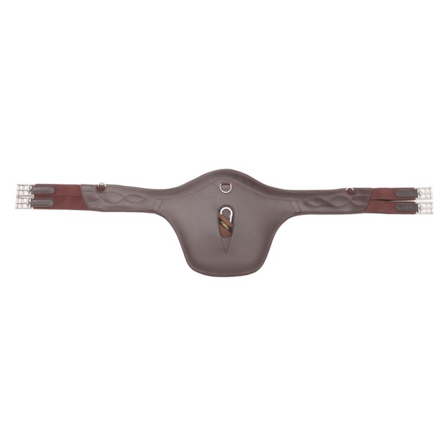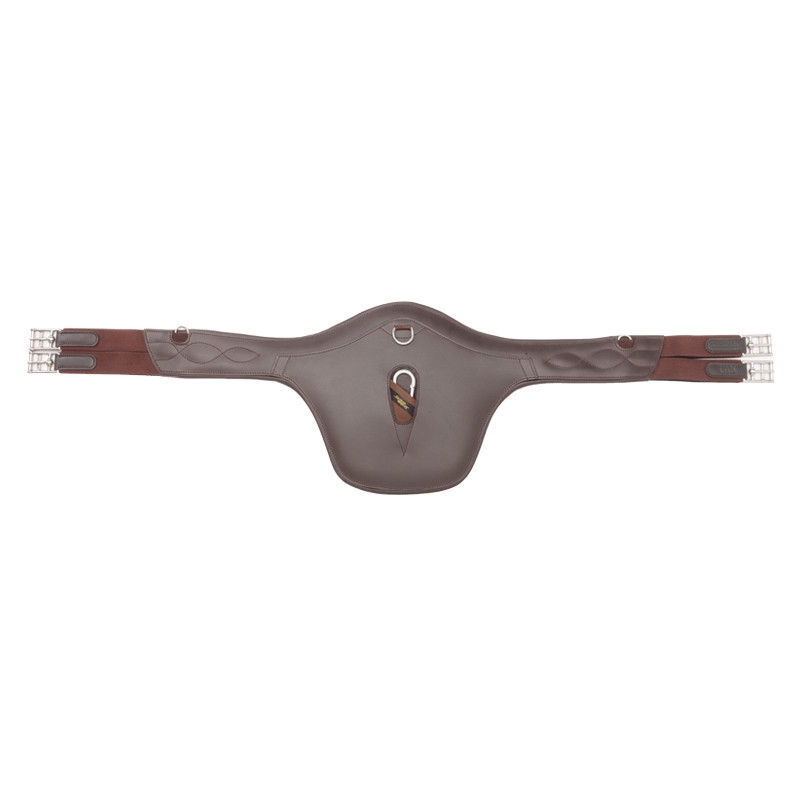 De gordel heeft een praktische karabijnhaak op de plaat, die het snel en eenvoudig maakt om een borsttuig of ander hulpteugel te bevestigen zonder de zadel los te maken.