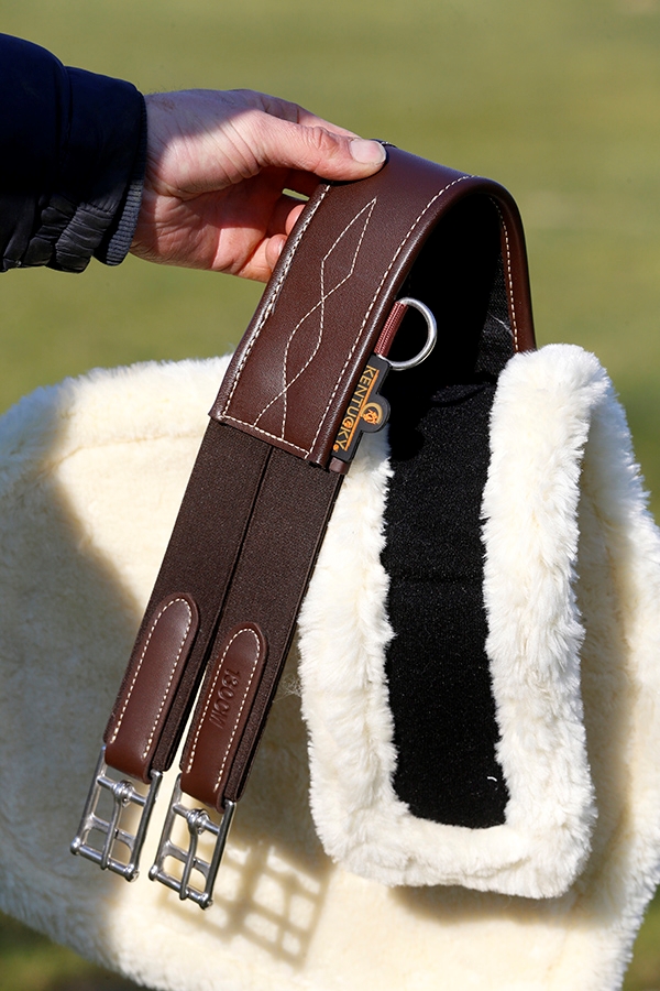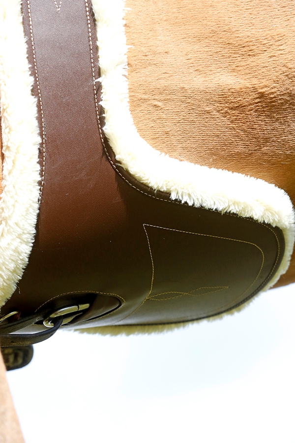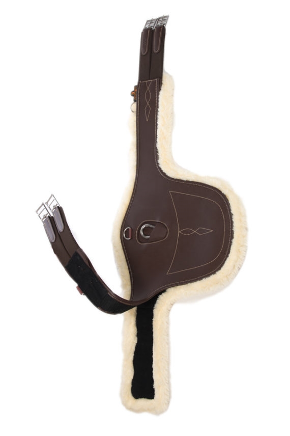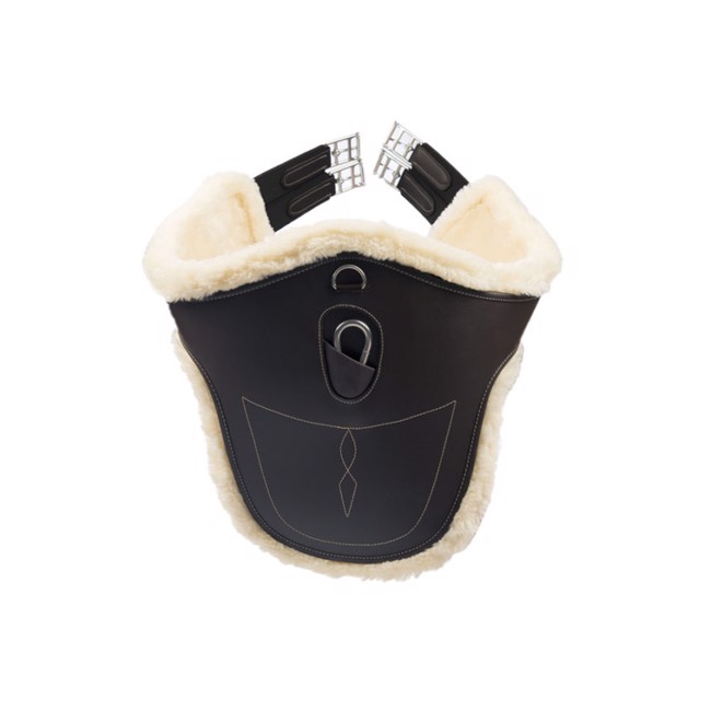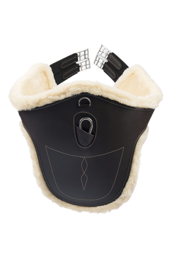 Heerlijke buikflap singel van stevig nylon met wasbaar, synthetisch, ademend en afneembaar lamsvel.