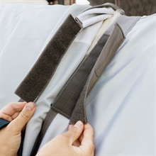 De stof is gemaakt van 900 denier sterk buitenmateriaal. Dankzij de lichte kleur van de deken reflecteert het de zonnestralen en absorbeert het geen warmte.