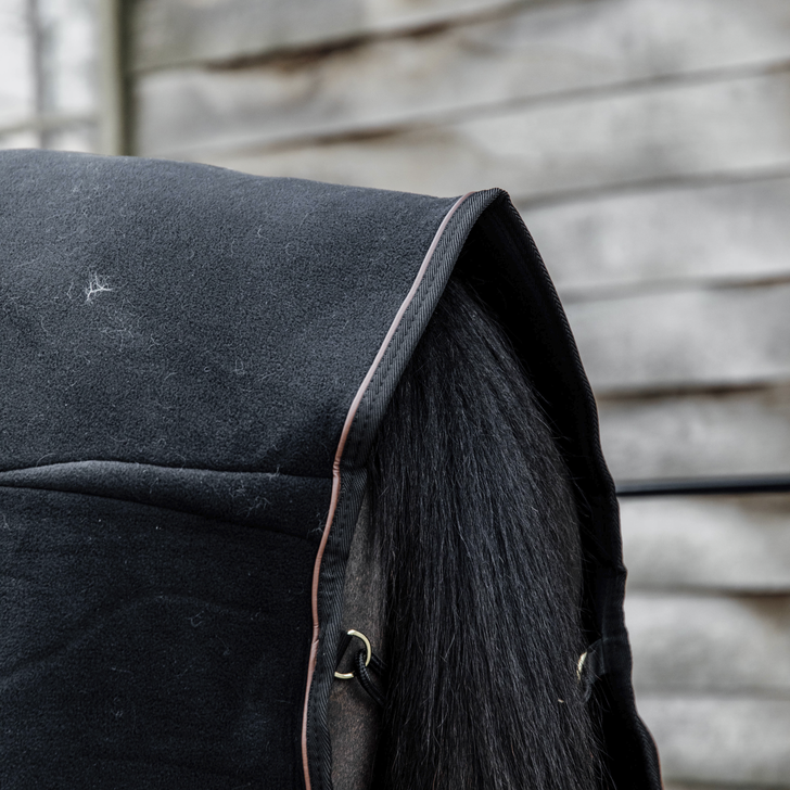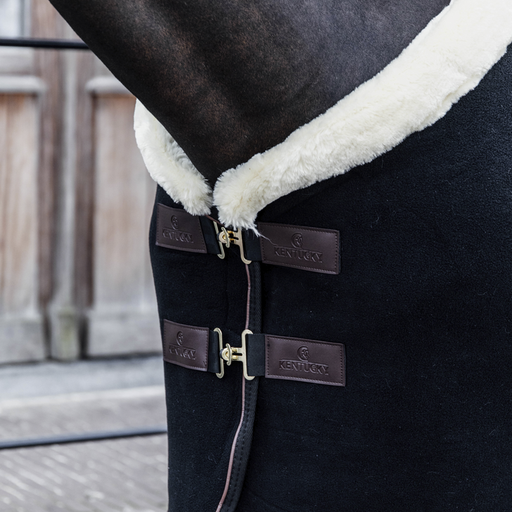 Kentucky Fleece Show Rug Heavy in elegant Black combineert een luxueus design met praktische functionaliteit. De deken heeft een wol-look en een zachte kraag van imitatie lamsvacht, die zorgt voor maximaal comfort voor het paard, terwijl hij er tegelijk exclusief uitziet op wedstrijden of na de training.
