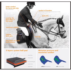 De pad is opgebouwd uit meerdere lagen, waaronder memory foam en gel, zodat schokken van het zadel optimaal worden geabsorbeerd.