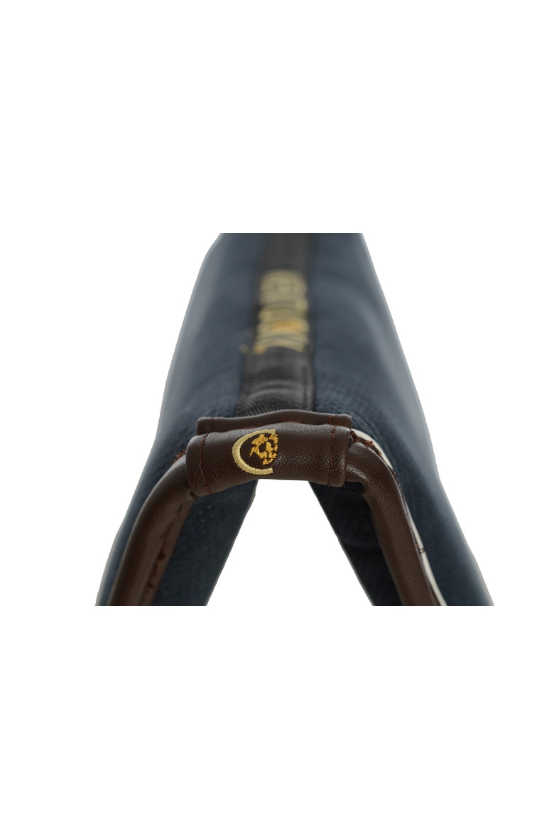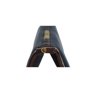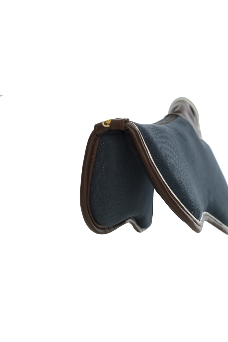 Navy met witte piping en bruine lederen rand